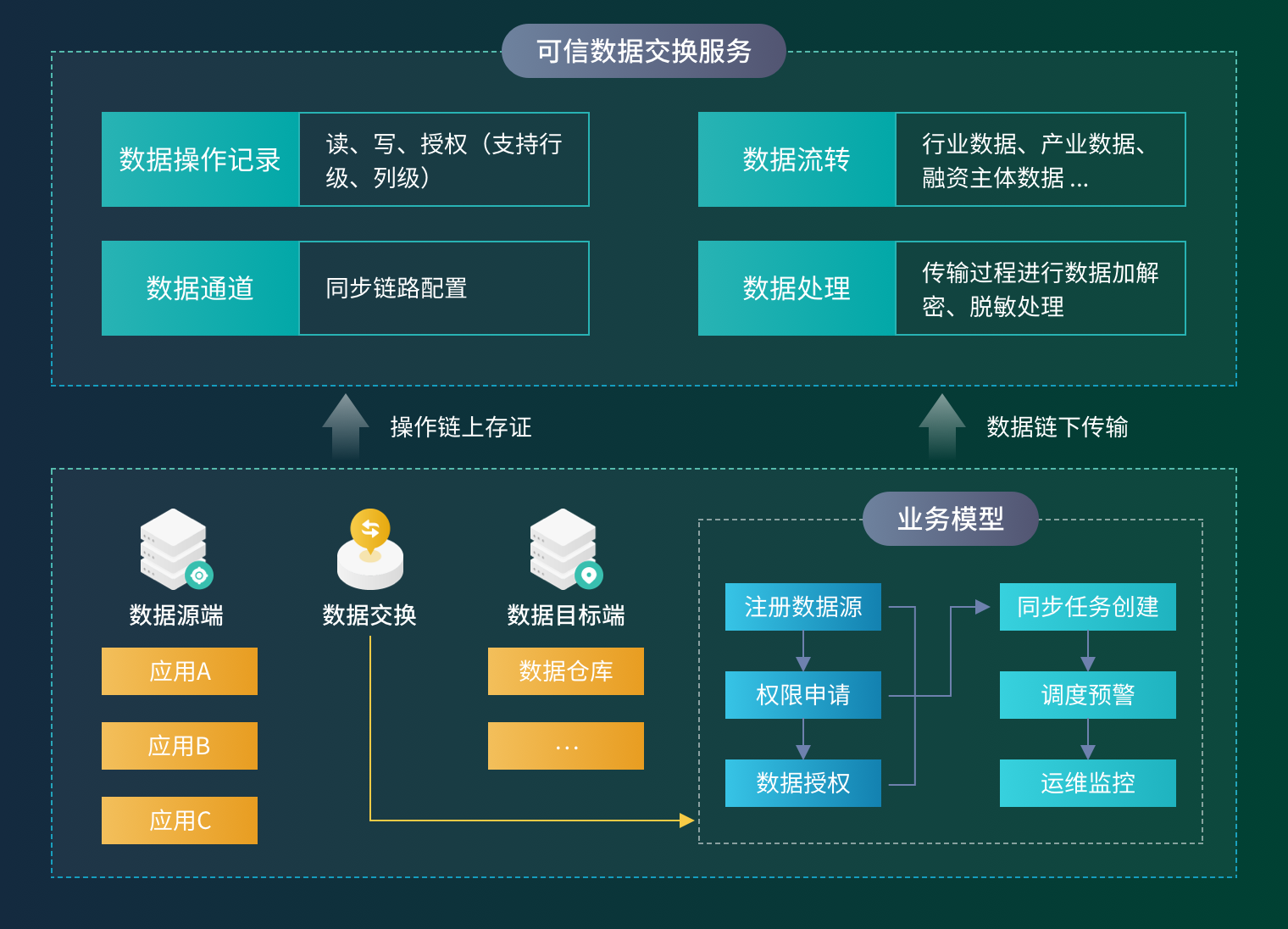 数据交换组件重点解决产业间数据孤岛难题,内嵌安全合规的数据交换机制,可满足数据需求方不同场景下数据交换需求。数据要素流通过程中,可审计、可溯源、确保供需双方数据交换的可信、隐私、安全。
